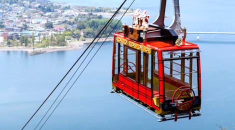 纜車是連結河口湖與天上山的交通方式。從纜車內可俯瞰下方河口湖的美麗景色。天上山山頂的公園是可以正面欣賞富士山和河口湖絕美景色的知名景點,2017年7月重新整修後的觀景臺是以前的兩倍面積。除了可一望富士山大全景及山腳下的迷人景色,另外還有天上之鐘、兔子神社、扔土器的熱門景點,可盡情享受觀光樂趣。